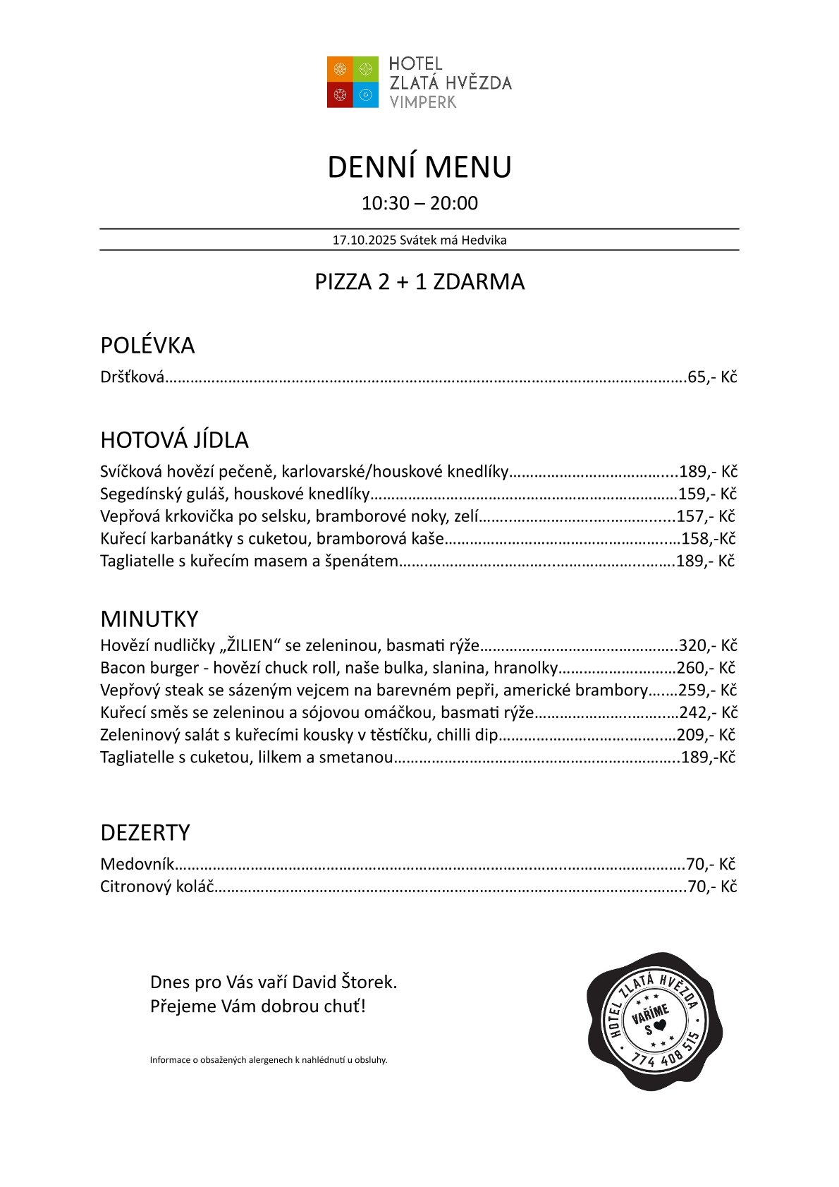 Od pondělí do neděle pro Vás připravujeme hotová jídla a zvýhodňujeme ceny minutek. Některá jídla se mohou vyprodat, proto nám neváhejte kdykoliv zavolat pro aktuální nabídku na tel. rozvozu 774 408 515. Děkujeme a přejeme Vám dobrou chuť.